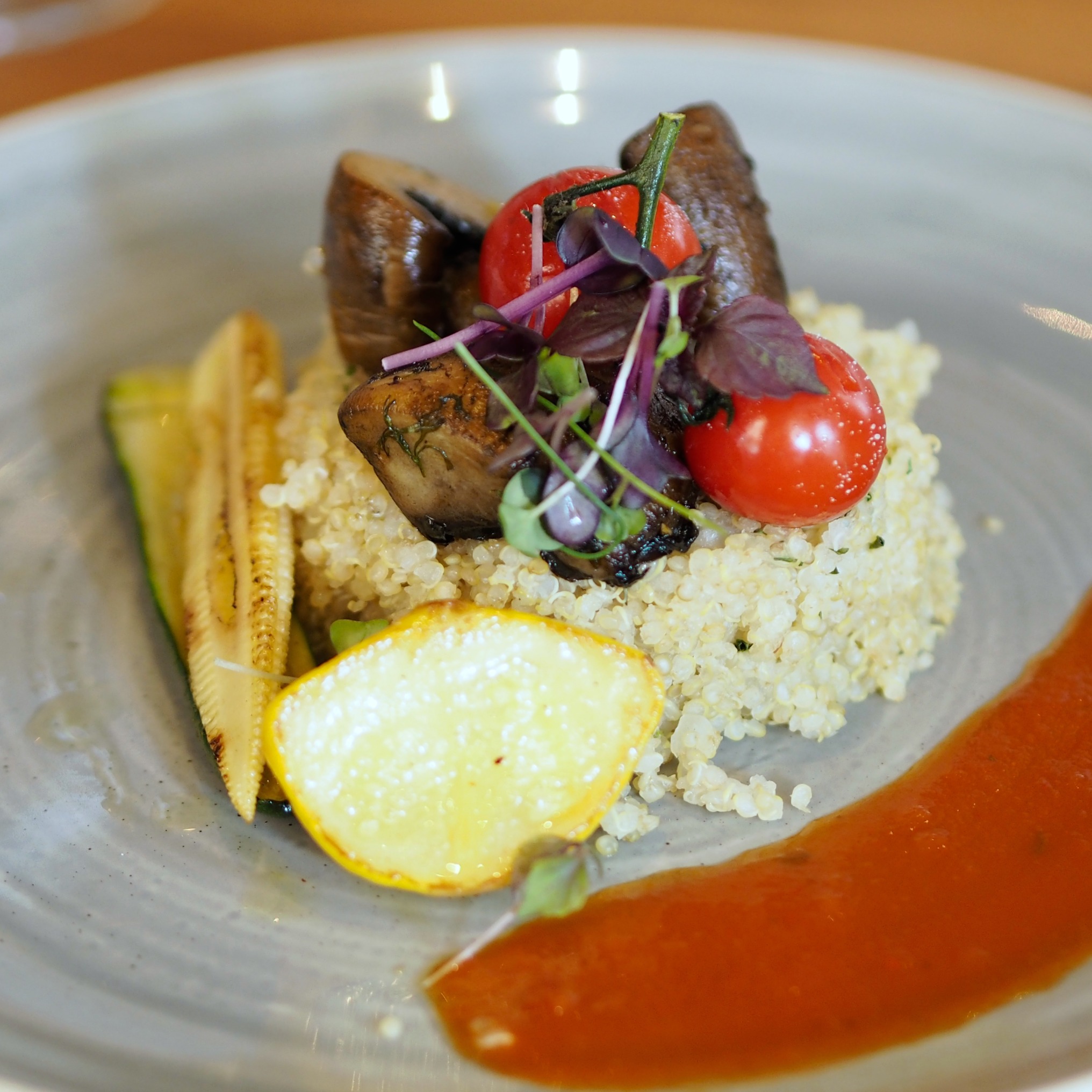 Donnerstag war bei mir ein Tag voller Termine und gleich am Morgen stand ein Meeting an – um welches Projekt es ging, werdet ihr bald erfahren 😉 Danach war ich noch beim Spar und hab viel Obst gekauft, Fotos gemacht und schon ging es weiter zum nächsten Termin – einem Lunch im Ritz Carlton. Wir durften ein bisschen Champagner und Flammkuchen am Dach genießen und bekamen dann ein super leckeres Mittagessen – Trüffelpommes, Salate, Grillgemüse und Steak für die Anderen. Für mich gab es ein Quinoa Türmchen statt dem Fleisch – so lecker! Zum Nachtisch hätte es noch Cheesecake gegeben, aber ich bin lieber bei den großartigen Trüffelpommes geblieben – so so gut!