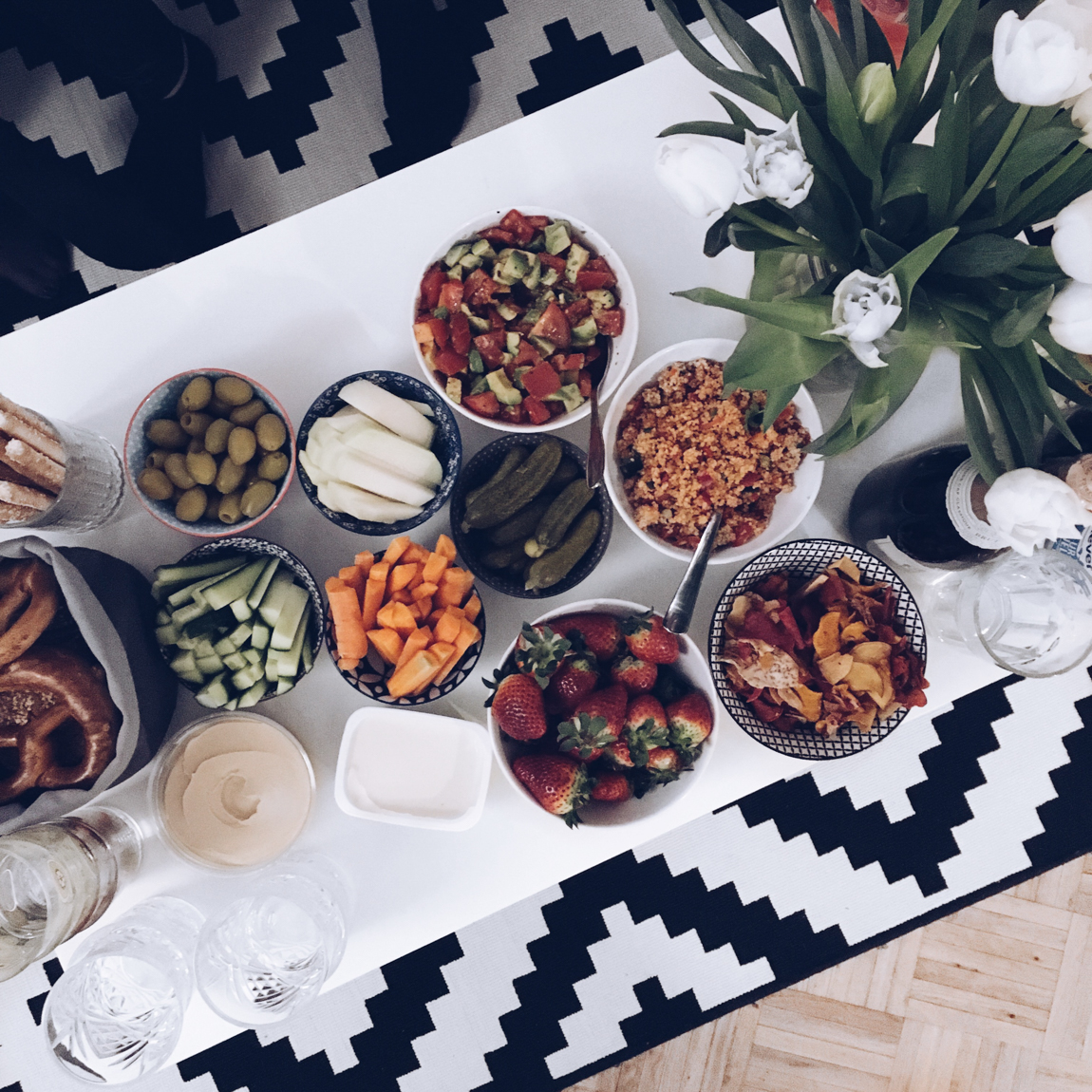 Wer mir schon länger, oder auch noch nicht so lange folgt, wird wissen, dass ich es liebe, essen zu gehen – absolute Quality Time für mich! Wir waren mehrmals in meinem Lieblingslokal, dem Erich, haben im 7*Stern die Lunchbowl und im Joseph Josephbrot mit Avocado gegessen und das erste Eis der Saison bei Veganista genossen – Cookies und Peanutbutter. Außerdem habe ich einen kleinen Mädelsabend veranstaltet und wir haben groß aufgetischt – Hummus, Brot, Gemüse, Chips, Couscous-Salat, Brezeln, Salzstangen, Schoki, Gin und Vino. Ich habe meine Liebe zu Gin-Tonic wiederentdeckt und von Diana gelernt, dass Gin Tonic mit Grapfruitsaft großartig schmeckt.